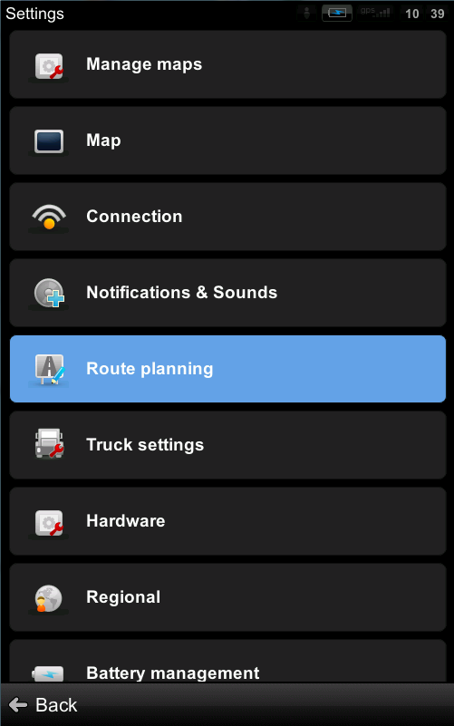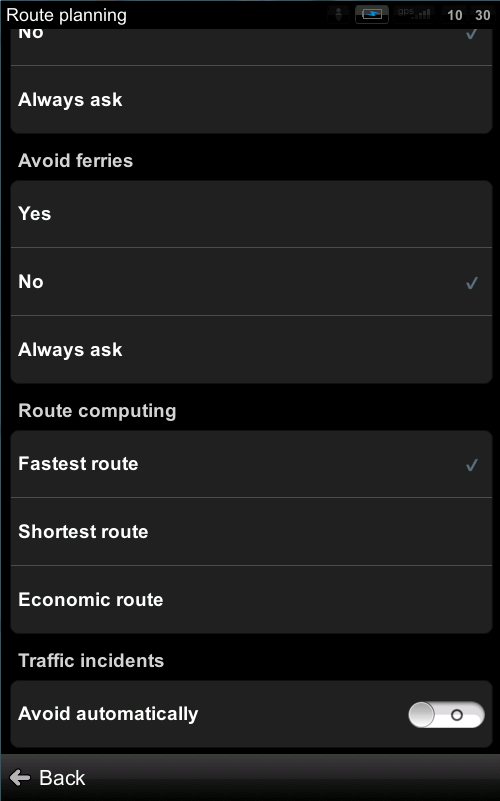 To change the route calculation method, i.e. your planning preferences, go to: Main menu > Settings > Route Planning > select your Route computing method (fastest, shortest, economic)