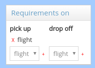 This setting can be used to ask the passenger to specify a flight number when booking to or from this zone. This setting is useful for airport zones. To use, click on the red plus sign (+) under pick up or drop off.