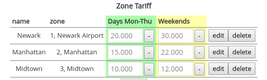 Por ejemplo puedes darle un precio a la zona de Manhattan: USD 15. Cualquier servicio en esta zona tendrá este precio.