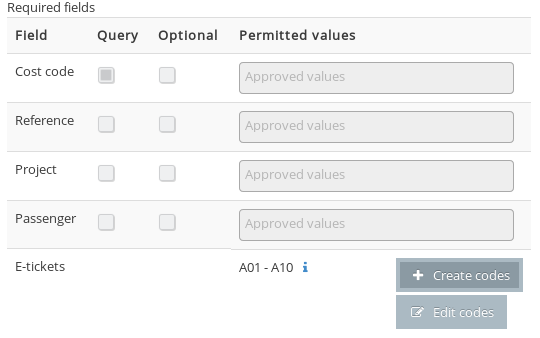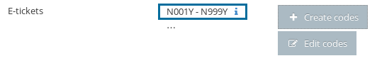- Click on Edit codes. A panel will appear listing your e-tickets.