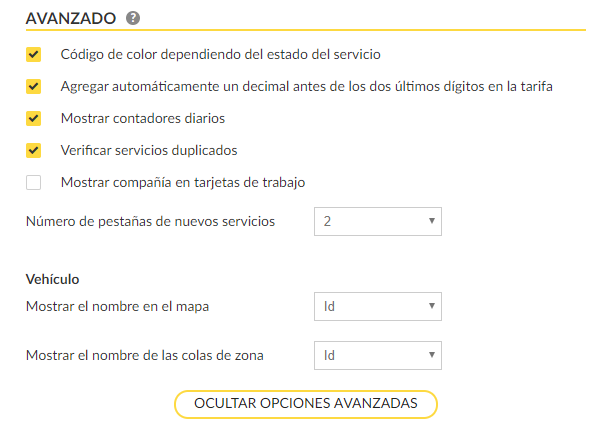 También podrás elegir cómo deseas mostrar el nombre del vehículo en la sección de cola en zona en la Central de despacho.