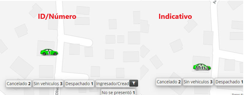 Al mostrar el vehículo en el mapa, puedes elegir si deseas mostrar el Nombre del vehículo como su número / ID o su Indicativo de llamada asignado en la Sección Vehículos en el Panel de Administración.