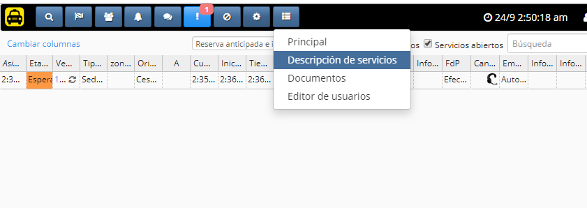 También verás reflejado el código de color en la Descripción de Servicios en la Central de despacho: