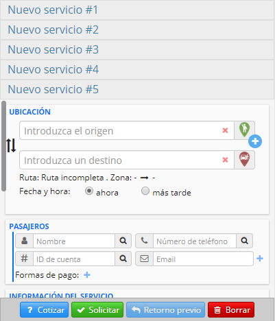 Esta característica habilitará la cantidad de pestañas de nuevos servicios que se mostrarán en la Central de despacho. Por defecto, el sistema mostrará dos pestañas de Nuevos servicio.