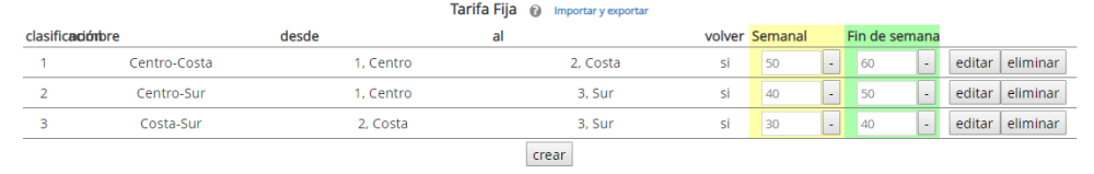- Selecciona las dos zonas entre las cuales se aplicará la tarifa fija.
