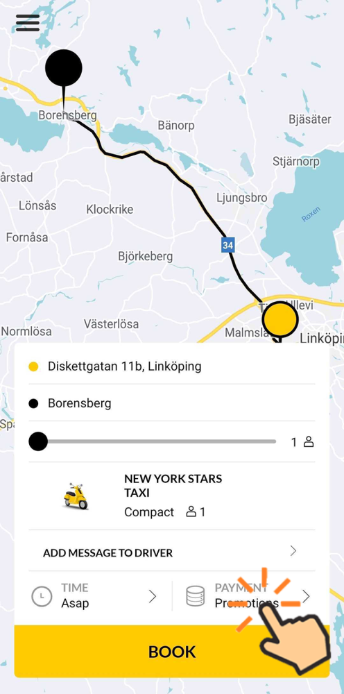 - In the passenger app, start to place a booking.