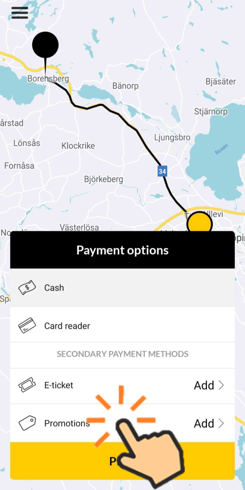 - After setting the pick up address and arriving to the booking details view, you can select to use a voucher. Do this by pressing Payment Method in the booking form, then tap Vouchers to add your code.