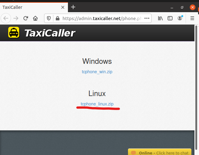 Download the TCPhone.run file for linux, which can be located here: https://admin.taxicaller.net/phone.php