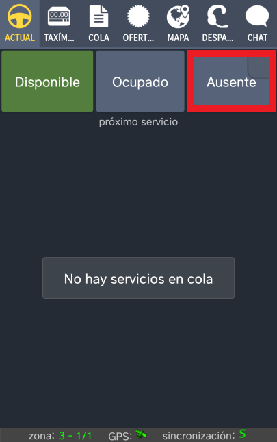 El sistema considerará los vehículos que estén en el estado de “Ausente” en el App de Conductor cuando busque el vehículo más adecuado para asignar un servicio.