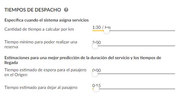 El sistema usará el valor que establezcas aquí para estimar el tiempo que le tomará a tu conductor llegar al punto de origen del servicio.