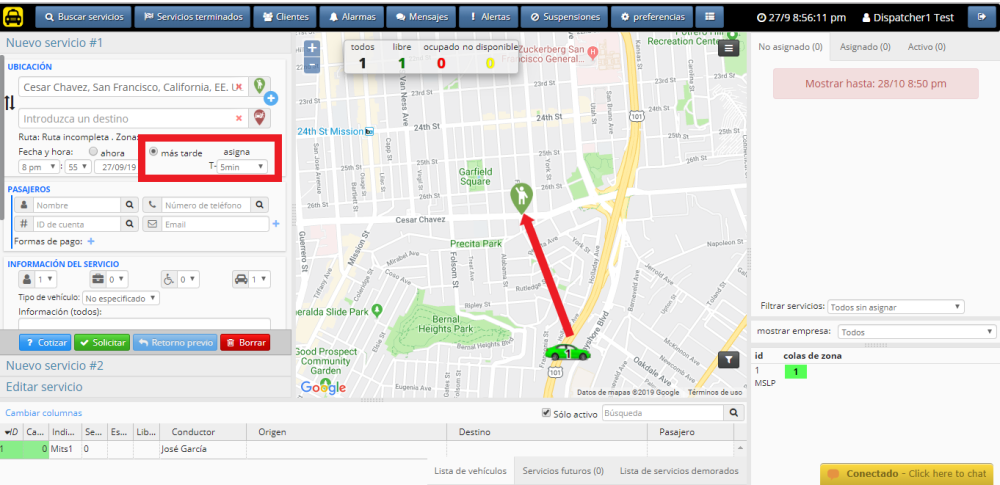 Y verás esta variable visible en la Consola de despacho cuando realices un servicio a futuro.