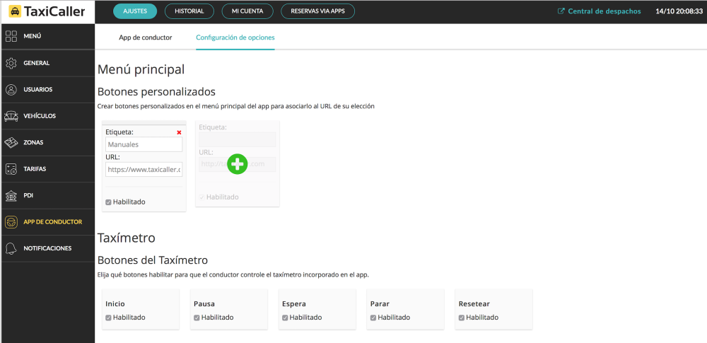 Crea botones personalizados en el menú del app de conductor con un enlace a la URL que elijas.