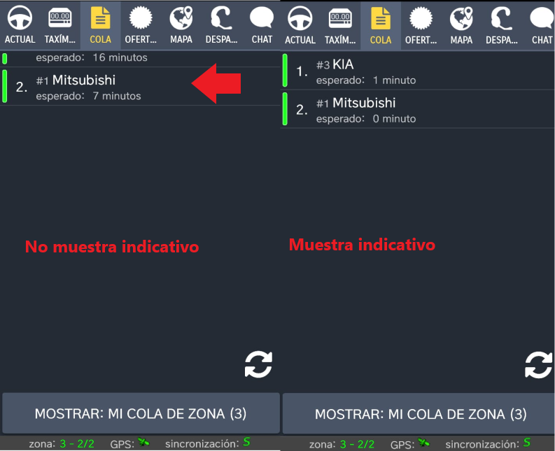 De lo contrario, si no está habilitado, podrás ver qué vehículo está en qué posición de la cola de la zona.
