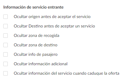 La siguiente configuración te permitirá seleccionar qué información sobre los servicios te gustaría hacer visible para tus conductores.