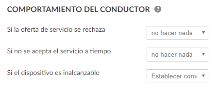Si el conductor no ha podido aceptar los servicios; Es posible habilitar algunas características sobre cómo te gustaría que el sistema se comporte antes estas acciones.
