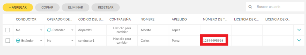 Para que funcione, deberá agregar el número de teléfono del conductor en el campo Número de teléfono en Ajustes> Usuarios> Crear y modificar sus usuarios.
