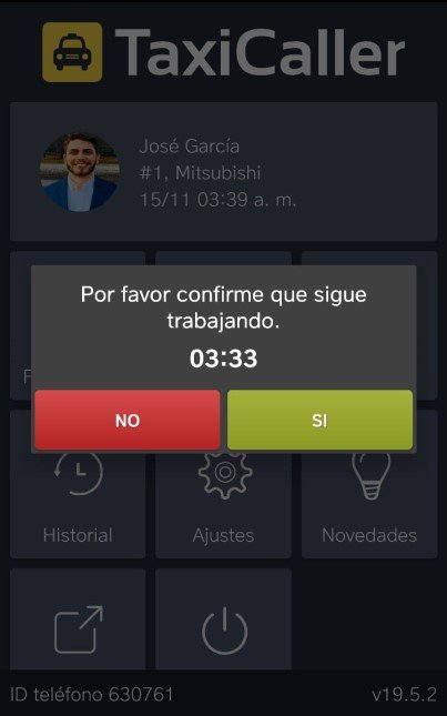 El conductor verá una ventana en la que deberá aceptar para confirmar que todavía está activo. Si el conductor no acepta, el sistema finalizará el turno del conductor.