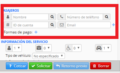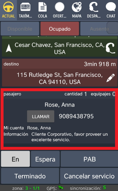 Al seleccionar una cuenta de cliente específica, se completarán automáticamente los campos del pasajero en la Consola de Despacho que luego se mostrarán en el App de Conductor al realizar un servicio para ese cliente específico, deshabilita esta opción si no deseas mostrar esta información al conductor.