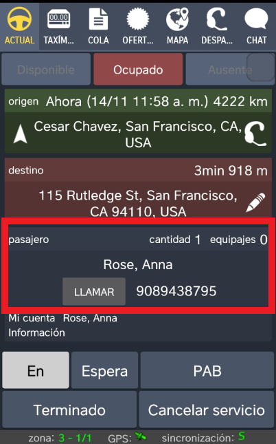 Mostrar teléfono del pasajero