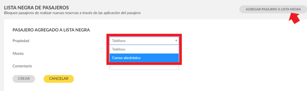Para bloquear a un pasajero en el panel de administración sigue los pasos a continuación: