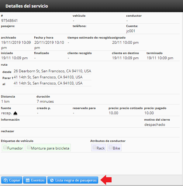 Es posible bloquear a un pasajero desde la Central de Despacho o desde el panel de administración.