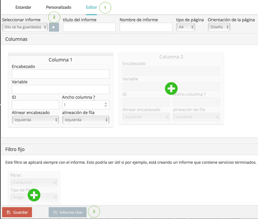 - Haz clic en el signo más para crear un nuevo tipo de informe desde cero