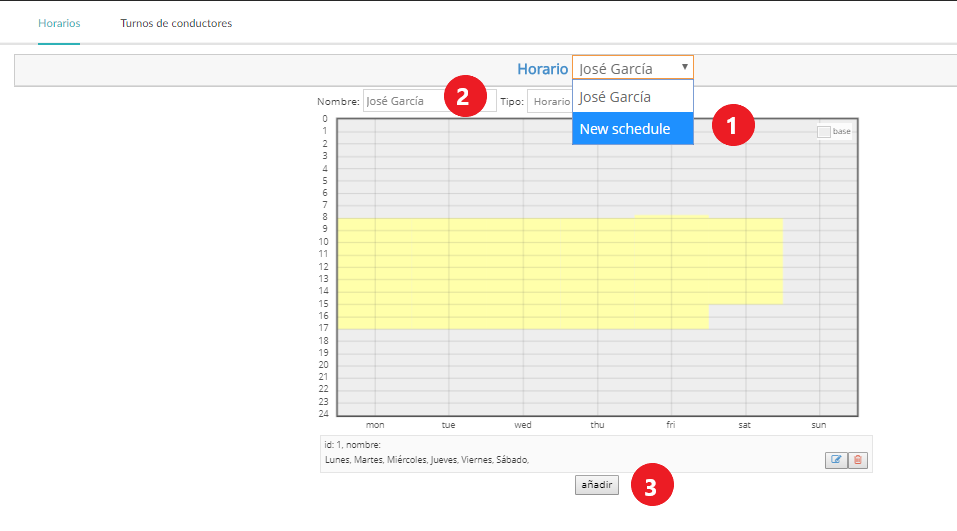 Para crear un nuevo horario: