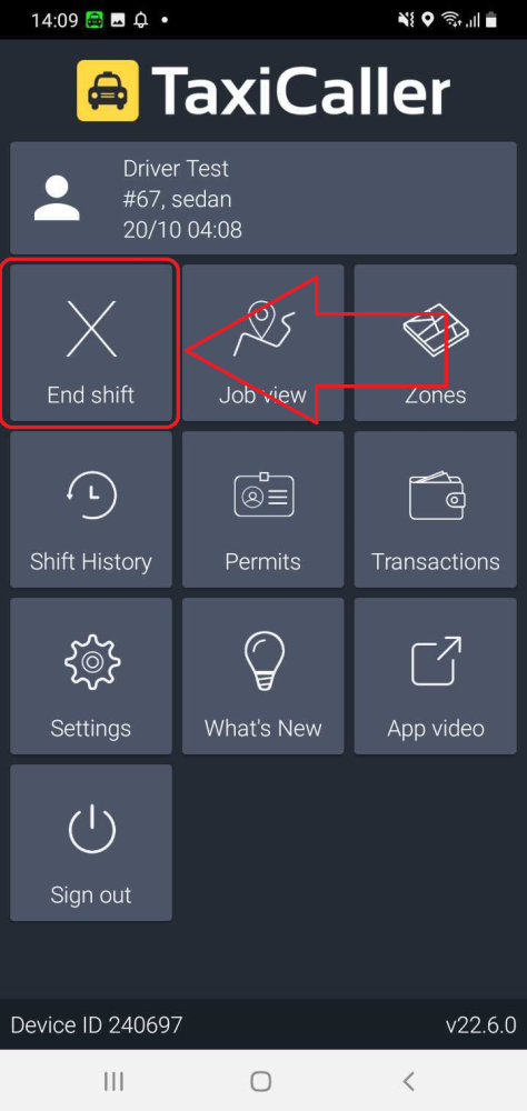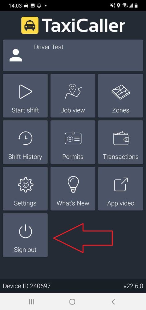 The “Sign out” option will allow you to sign out of the driver app.