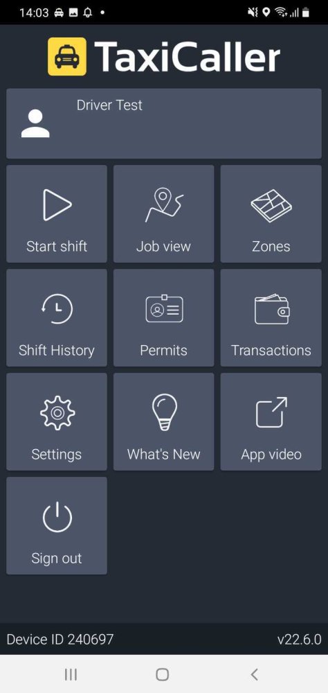 Once you are logged in you will be able to see the screen below. Press on the “Start shift” button to proceed. Notice that you can be logged in in the app without stating a shift, but you won’t be allowed to take jobs or be visible from the dispatch console until you do so.