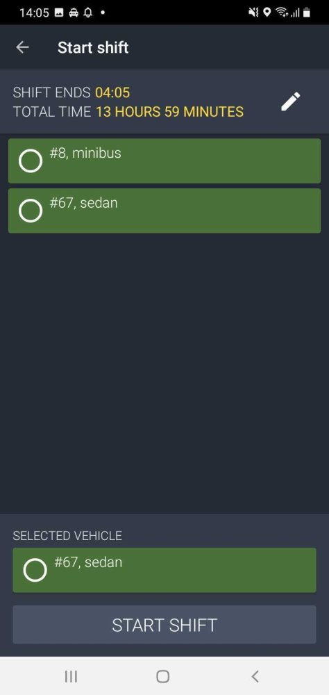 When you start a shift, you will be able to select an available vehicle from the list. To learn more about how shifts work, please check the Driver Shifts section.