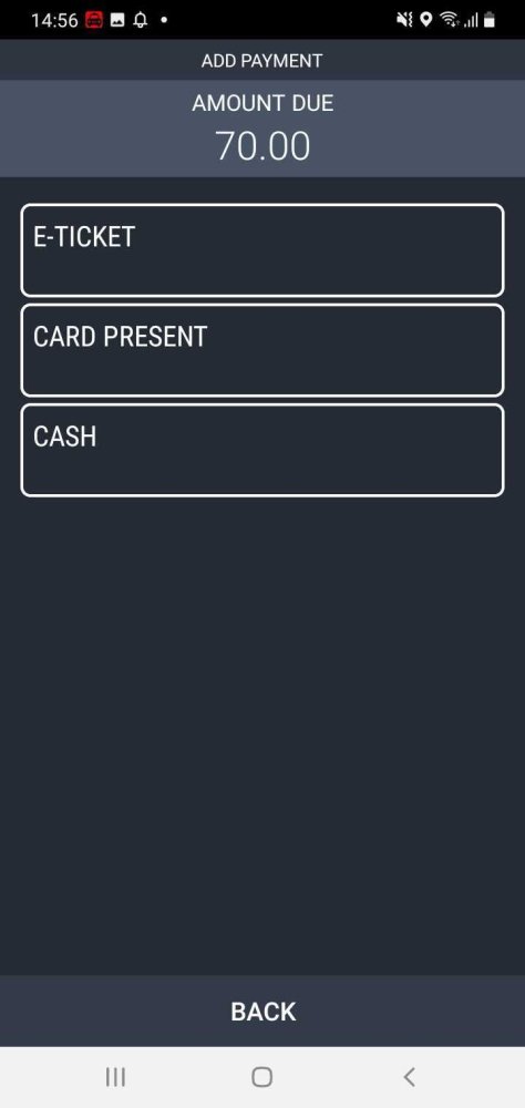 You can then select the option the passenger has chosen to use, for example, CARD PRESENT if they are willing to pay with a card and you have a card reader device.