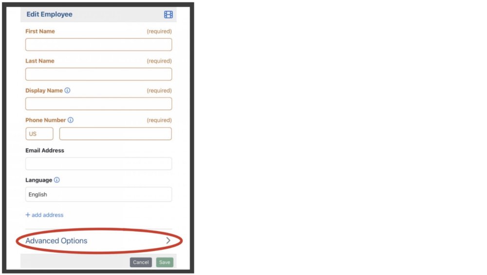 Once you access the Edit Employee Form, click on the pull-down menu labeled Advanced Options.
