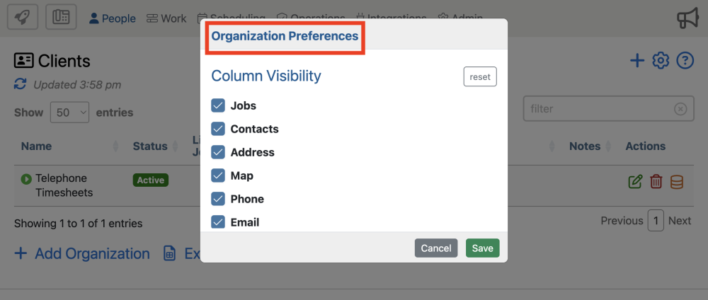 3. To change your organizational preferences of client data, click ![]()