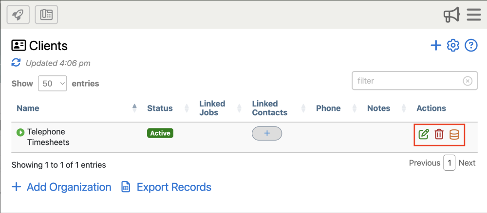 Telephone Timesheets offers a database specifically for supervisors to manage their list of clients.