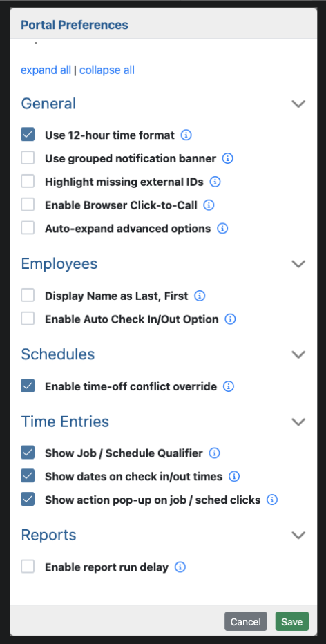 When enabled, jobs in the Time Entries page will be labeled as scheduled, unscheduled, or no show.
