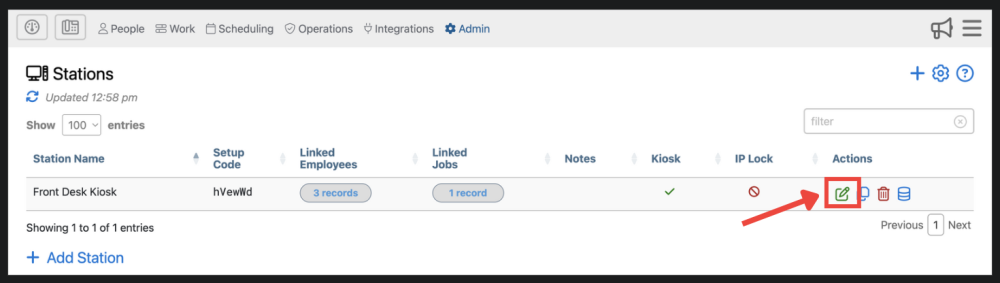 You can edit stations by clicking on the green edit button