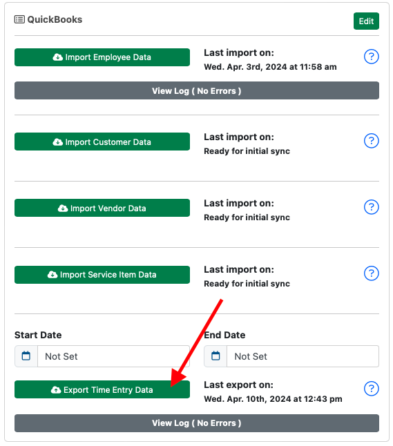 After the export is complete, you will have to make any edits to employee timesheet entries, directly within QuickBooks Online.