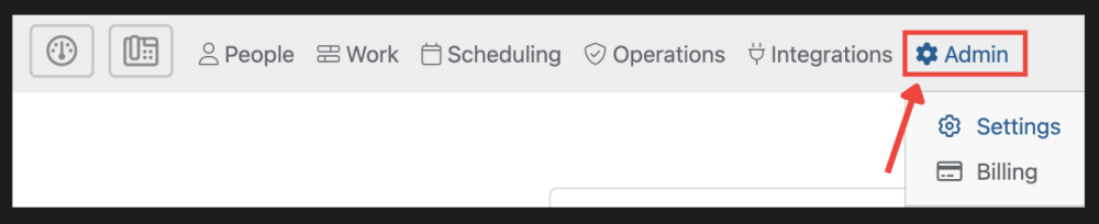 This top-level menu contains all of the sections related to the Administrative functions involved in your business — Settings, Billing, Stations, Bill/Pay Rates, Change Password, or Close Account.