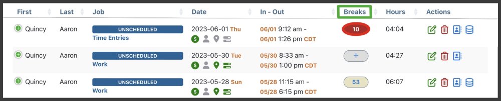This feature highlights issues with breaks so they can be addressed with employees. This is important in states like California where there are strict laws to ensure that employees are allowed to take breaks of the right duration and within a reasonable time.