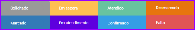 A plataforma utiliza um sistema de status para acompanhamento dos agendamentos: