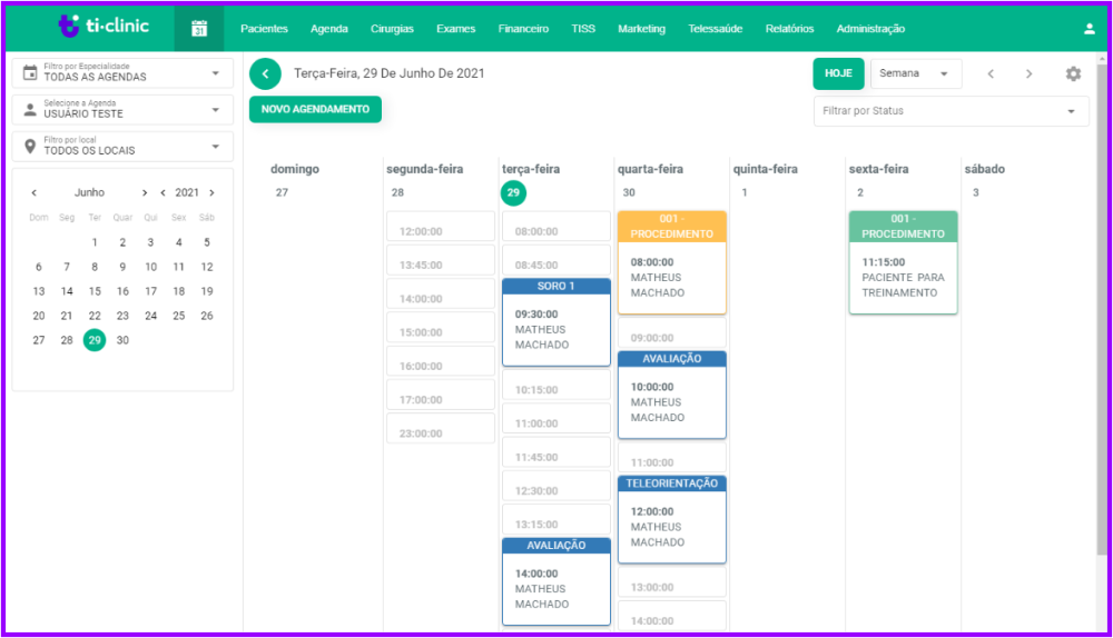 3. Selecionando visualização por semana, os agendamentos serão mostrados desta forma: