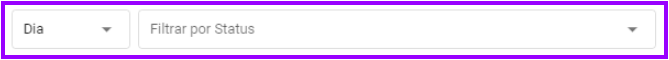 2. Ao lado superior direito você pode selecionar a visualização da agenda na forma de dia, semana ou mês, além de filtrar os agendamentos de acordo com seus status designado: