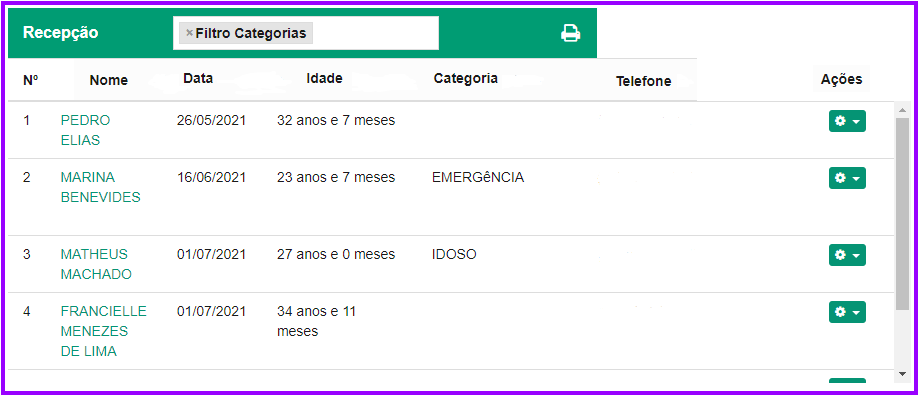 você poderá filtrar os pacientes de acordo com a categoria/queixa que foram adicionadas durante a inclusão do paciente na lista.