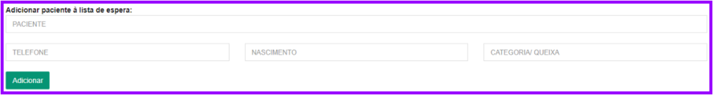 2. Abaixo contém o formulário para adição de um paciente à lista de espera selecionada. Preencha as informações necessárias e clique em