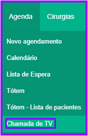 Para acessar a tela do chamador de TV, clique em “Agenda” nas abas acima, e então em “Chamada de TV”: