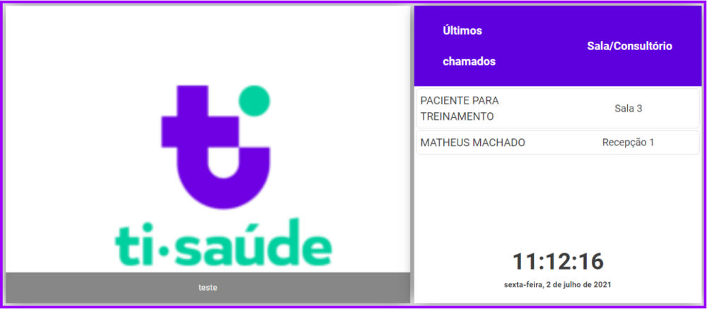 1. Toda chamada feita, seja na agenda ou na lista de pacientes do totem, aparecerão nessa página: