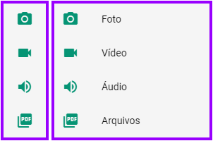 1. Os arquivos multimídia podem ser adicionados ao clicar nos botões verdes à direita da página: