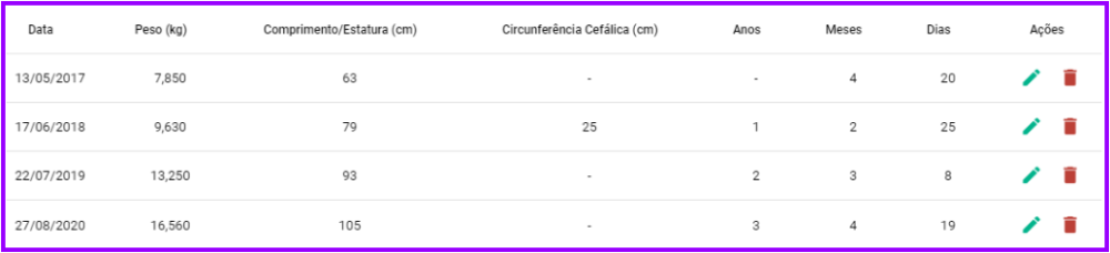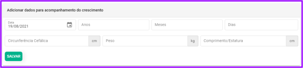 O portlet de crescimento serve para acompanhar o crescimento geral do paciente: