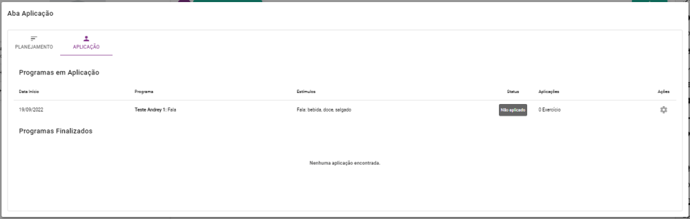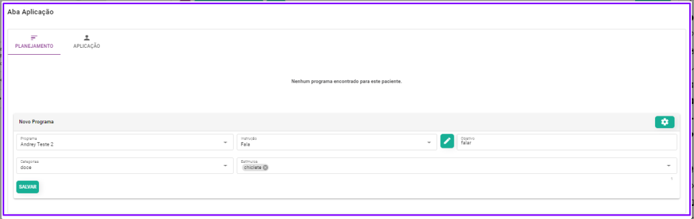 O portlet de ABA aplicação serve para montar programas de exercícios, tantos mentais como físicos, a pacientes no espectro autista e acompanhar sua aplicação: