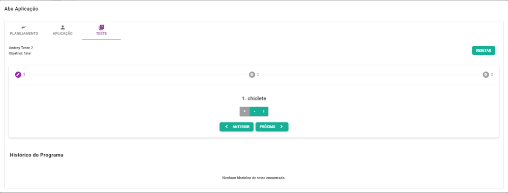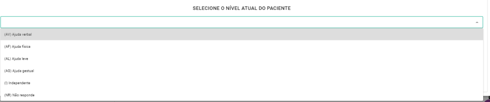Nesta tela, podemos observar que os estímulos que cadastramos apareceram e podemos selecionar o nível atual do paciente.